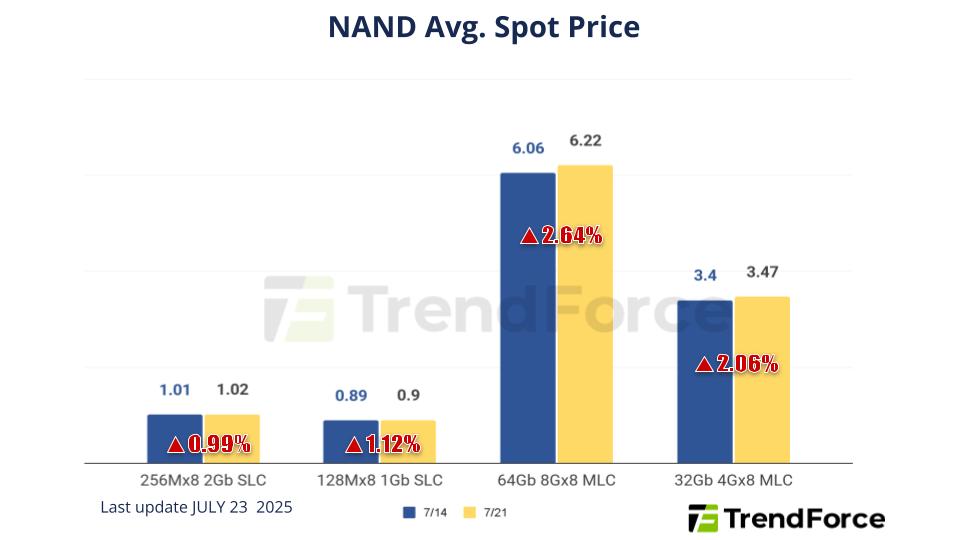 According to TrendForce’s latest memory spot price trend report, regarding DDR4, due to the two major Korean suppliers implementing significant monthly price hikes for consumer DRAM chips, the previous downward trend in prices has eased. As for NAND flash, high-capacity products are confined by the expected price differentiation between buyers and suppliers, and ended up being scarce in actual transactions. Details are as follows: