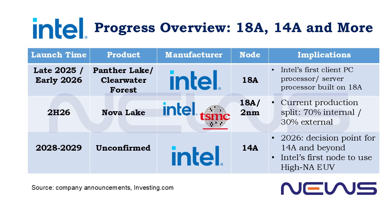 Supported by SoftBank’s $2 billion investment and the U.S. government’s 10% ownership stake, Intel has provided a more detailed outlook on its foundry business and key process node roadmap. According to Bloomberg and Investing.com, Team Blue views 2026 as a pivotal year for its manufacturing technology, which will determine whether it is ready to advance with 14A.
