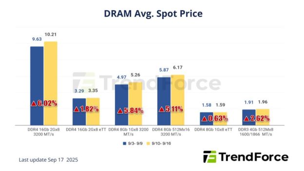 According to TrendForce’s latest memory spot price trend report, regarding DRAM, although DDR4 supply remains tight, the price surge has made it difficult for buyers to keep up, leading to limited trading volumes despite the price hikes. In NAND, the spot market is seen with price increases, recovery in order inquiries, and risen transactions, especially for QLC products. Details are as follows:
