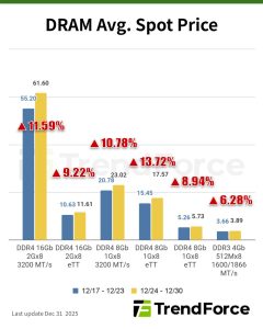 TrendForce notes that the rapid rise in memory prices is weighing on a range of consumer devices, including game consoles. As a result, TrendForce has revised its 2026 forecast for global game console shipments downward, widening the expected year-over-year decline from 3.5% to 4.4%.