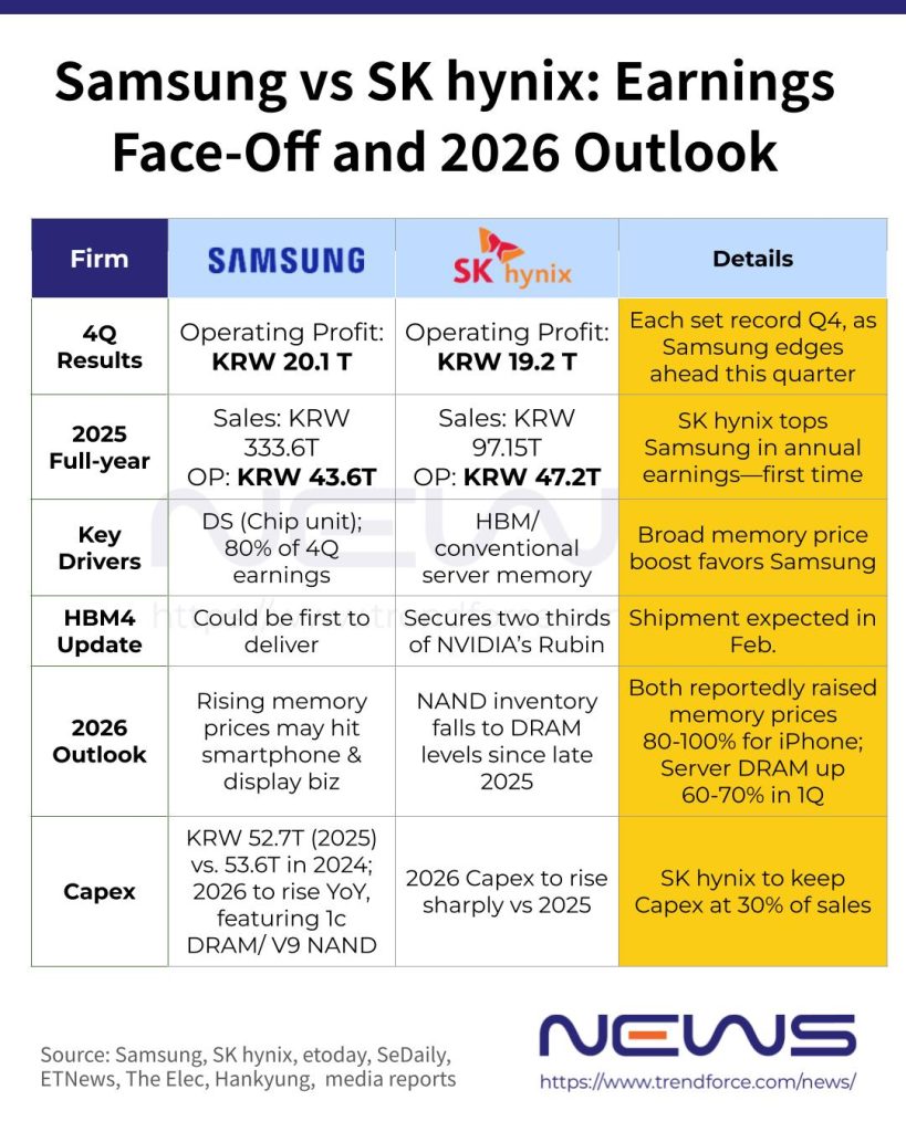 [News] Samsung Trails SK hynix for 2025 but Tops Q4 with Record KRW 20T Earnings amid Chip Rebound