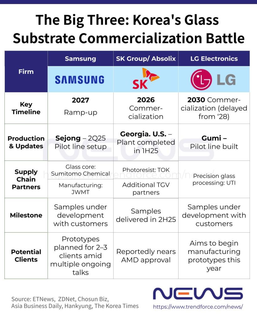 As Samsung Electro-Mechanics prepares for a full market rollout, ETNews reports that it established a pilot line for glass substrate prototypes at its Sejong facility in 2025. In November, it also agreed to form a joint venture with Japan’s Sumitomo Chemical Group, aiming to speed up the production and supply of glass cores—a critical component of semiconductor glass substrates, the report notes.