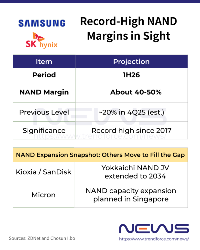 [News] Samsung, SK hynix Reportedly Projected to Post Record-High NAND Margins of 40–50% in 1H26