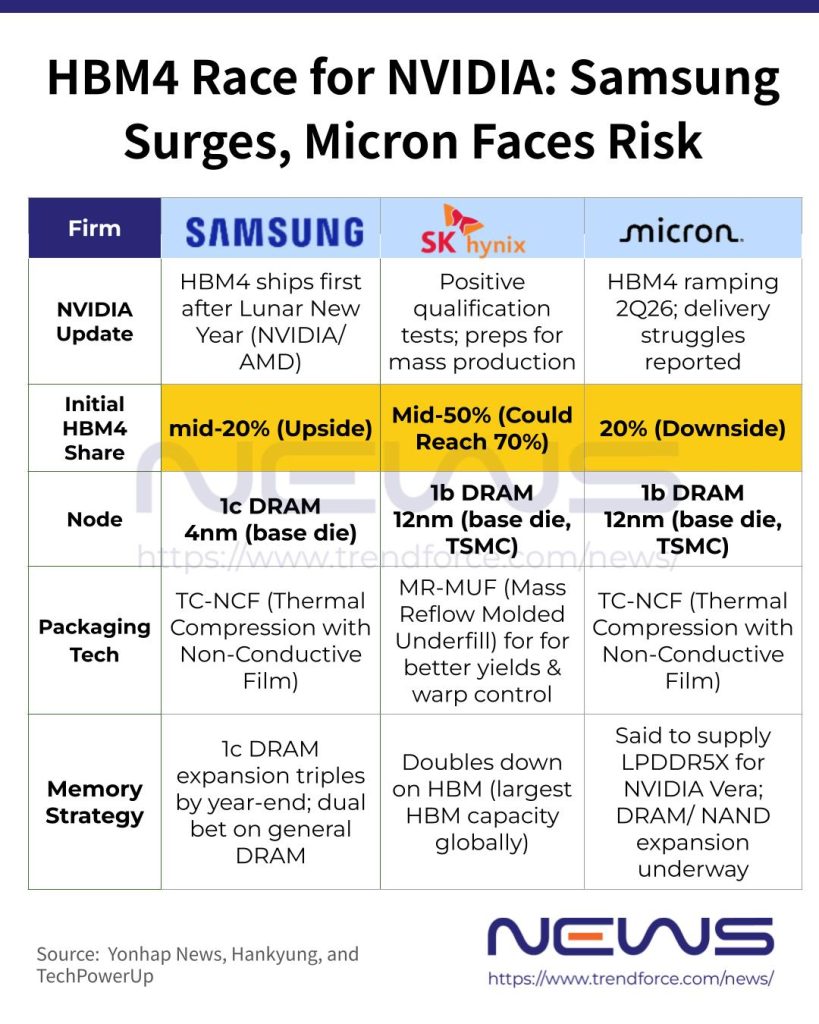 Despite holding a smaller share, Samsung is making a strong comeback. Yonhap News reports it secured purchase orders after clearing NVIDIA’s quality tests ahead of schedule and plans to begin mass shipments of HBM4 as early as the third week of this month.