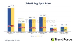 According to TrendForce's latest memory spot price trend report, regarding DRAM, suppliers continue to raise DDR4 quotes, encouraged by Nanya’s strong August revenue, but buyers show limited acceptance of the hikes. In NAND, SanDisk’s push for a 10% increase to lift market sentiment has met resi...
