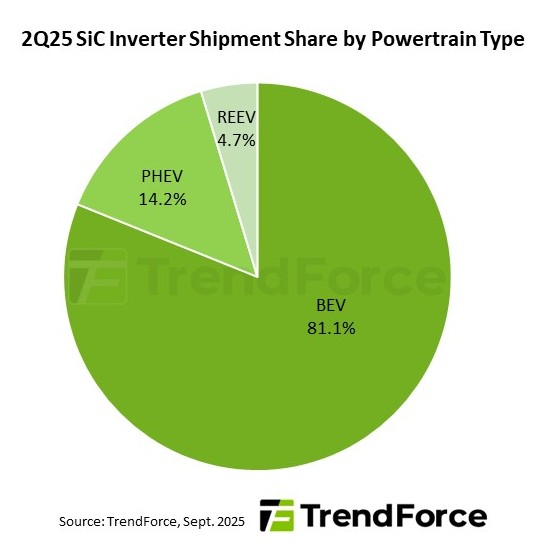 TrendForce’s latest report, “Global EV Inverter Market Data,” reveals that global installations of EV traction inverters reached 7.66 million units in 2Q25, up 19% YoY, buoyed by strong BEV sales. BEVs accounted for 52% of installations, once again taking the lead since 1Q24 and surpassing the combined share of hybrids, including HEVs, PHEVs, and REEVs.