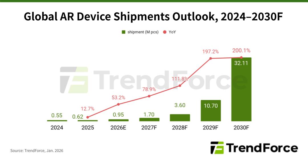 Eventually, as the novelty effect diminishes, consumers will prioritize practical value and high-quality AI experiences. Brands that effectively balance comfort, affordable pricing, and a strong content ecosystem will be best positioned to meet growing market demands and advance into the next growth stage. According to TrendForce, with increased participation from major vendors fueling expansion, global AR glasses shipments are expected to hit 32.11 million units by 2030.