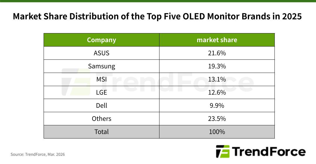 Global Shipments of OLED Monitors Surge 92% in 2025; ASUS Secures Market Leadership, Says TrendForce