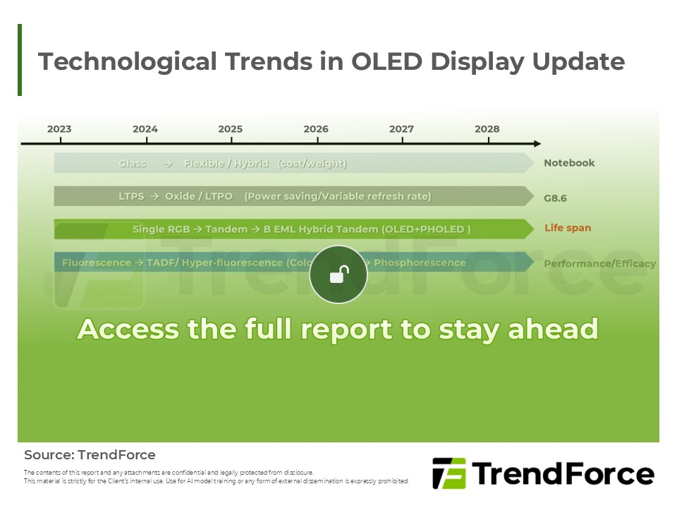 Panel makers are shifting their investment focus toward IT, mobile, and medical display applications, while actively adopting lightweight encapsulation technologies for OLED panels. Although tandem OLED processes lead to higher material costs, the resulting improvements in production yield contribute positively to manufacturing efficiency.