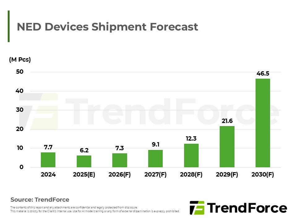 TrendForce’s latest investigations reveal that Meta has released its first mass-produced AR device—the Meta Ray-Ban Display Glasses—featuring LCoS display technology. This move is expected to boost LCoS’s share of AR displays to 13% by 2026. By contrast, single-panel full-color LEDoS is not expected to achieve major breakthroughs in technology and cost until 2028. Until then, competition between the two technologies is set to intensify.